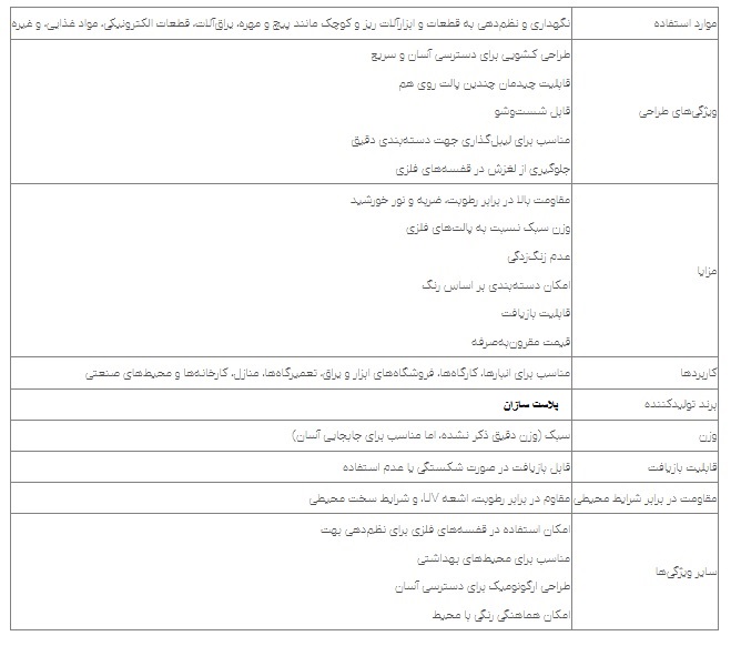 موارد استفاده : نگهداری وسیله های ریز با تعداد بالا و غیره