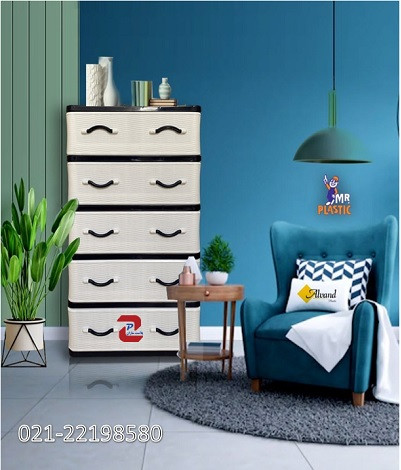 فایل کشویی پلاستیکی دراور سایزبزرگ طرح حصیری 5کشو کد 405