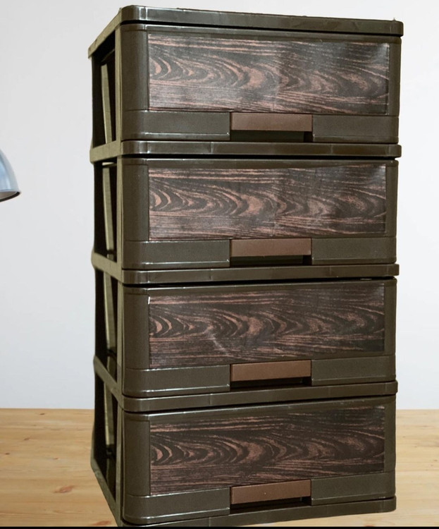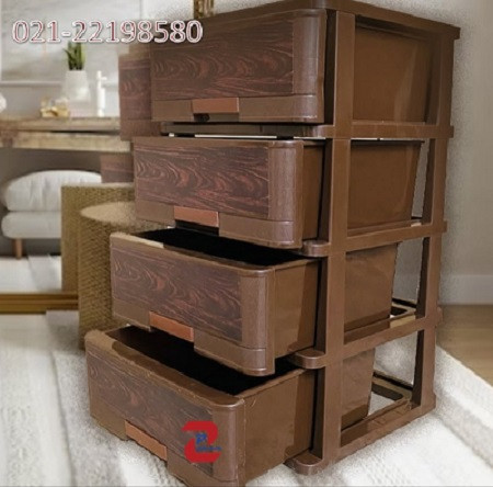 فایل پلاستیکی 4 کشو قهوه ای طرح چوب